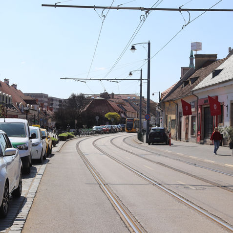 As we make our way back toward Kolosy Square along Becsi Road, we can see architecturally impressive buildings. Several of these structures feature wall displays historical images of the street and its buildings, offering a glimpse into the area's past. Later in the street, you will also find the Podium Restaurant and the Buda Gourmet shopping center. Naturally, we can also admire the church during the stroll.