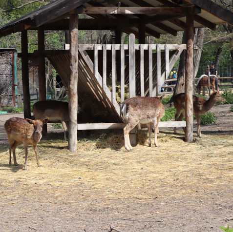 Continuing along the route, we arrive at the Zoo, where visitors can observe a variety of animals including horses, deer, ducks and other animals. Entry to the Zoo is free, and guests can pet and feed animals.
