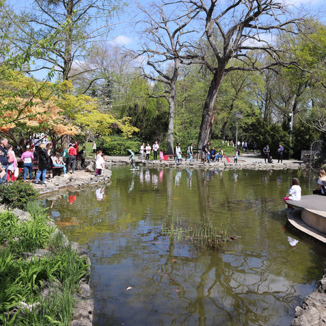 Directly across the road lies City Park Lake. The lake's pleasant atmosphere is enhanced by willow trees, a fountain, and walking paths. Visitors can relax on benches while enjoying views of notable nearby landmarks, including the Zoo, the historic main building of the City Park Ice Rink, and the elegant Robinson Restaurant.